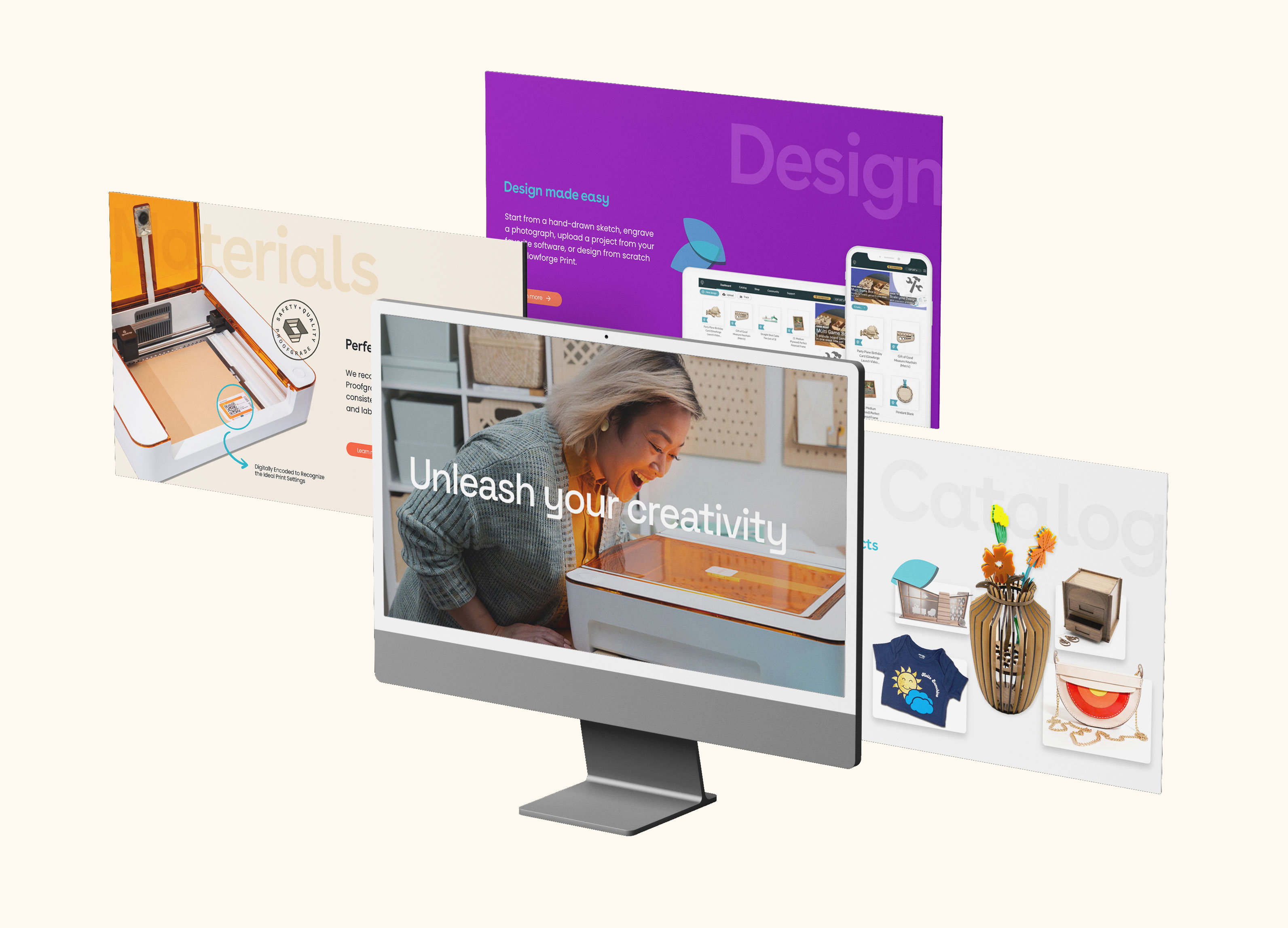 Challenge: Introduce a new line of Glowforge Craft Lasers designed to make laser cutting more accessible to a broader creative audience. The challenge was to expand the brand into a more approachable product tier without diluting Glowforge’s premium credibility, while clearly differentiating Aura and Spark within the broader product ecosystem.